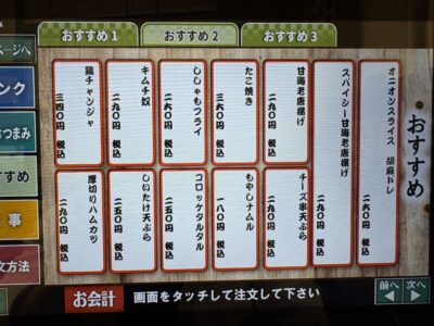で、生ビールがウーロンハイに代わったところから、揚げものは控えている、と言ったくせに、「ししゃもフライ」(260円)とか「カキフライ」(340円)、「しいたけ天ぷら」(250円)などが登場。揚げものだけど、ハムカツやコロッケなどではなく、ししゃもや牡蠣などを選ぶところが、健康への配慮である。と、自分に言い訳をしつつ。